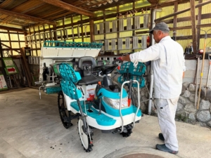 今まで使っていた田植え機とは世代が変わっていて、自動調整機能が優れており効率的作業が可能で、安全性も高いという。