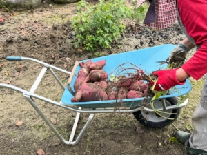 ふかふかのサツマイモが待ち遠しい、田舎の収穫の風景である。